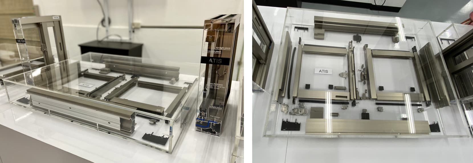 1.Material Board (Disassemble) เป็นบอร์ดสำหรับอธิบายคุณสมบัติ และส่วนประกอบต่างๆของประตูและหน้าต่างจากทอสเท็มแต่ละรุ่น ทำให้ลูกค้าสามารถเห็นรายละเอียดแต่ละชิ้นได้อย่างชัดเจน นำไปสู่การเลือกบานประตูและหน้าต่างที่เหมาะสมกับที่อยู่อาศัย