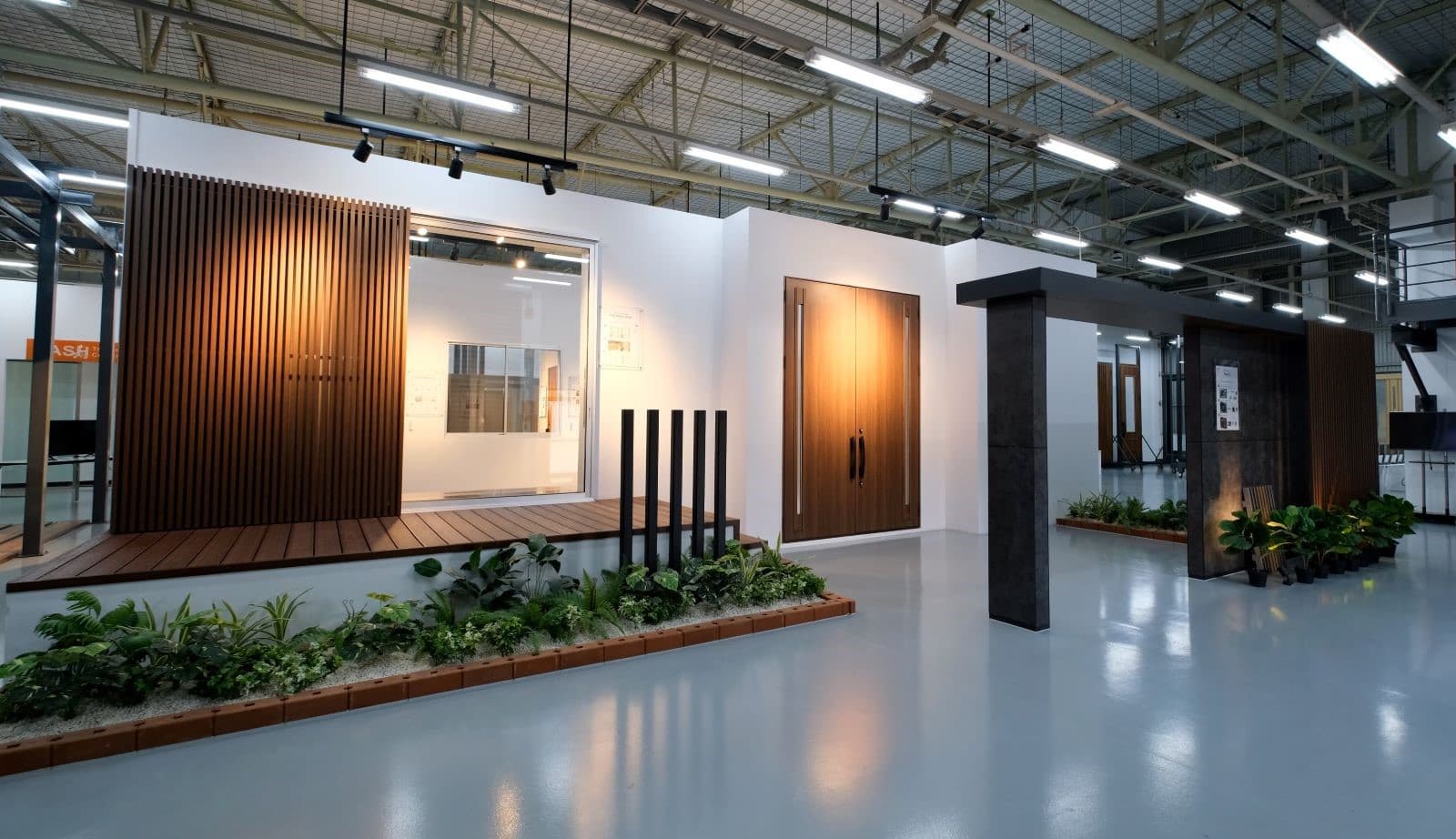 ส่วนตรงกลางโชว์รูมที่จัดแสดงทั้ง Panoramic Door (ด้านซ้าย) และประตู GIESTA (ด้านขวา)