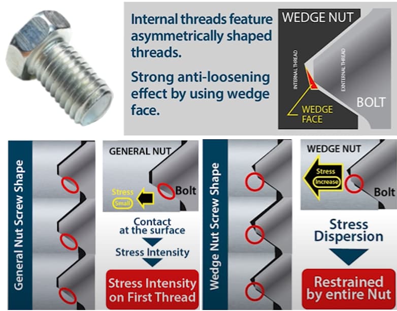 ใช้นอตลิ่มที่มีสกรูรูปลิ่มแบบพิเศษที่ให้ผลลัพธ์การล็อกในระดับสูง