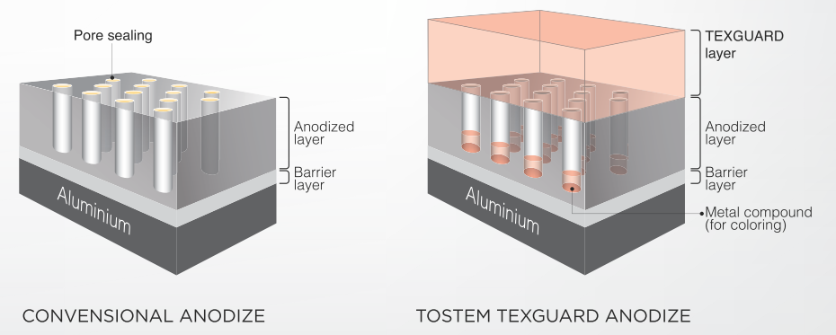 TEXGUARD เป็นการเคลือบด้วยยอิเล็กโทรดที่ทนต่อสภาพอากาศได้สูง จึงไม่ต้องกังวลแม้จะต้องเผชิญกับฝน ลม หรือแสงแดดภายนอก โดยผลิตภัณฑ์วงกบสำหรับที่อยู่อาศัยของเราได้รับความไว้วางใจจากลูกค้าทั่วโลก