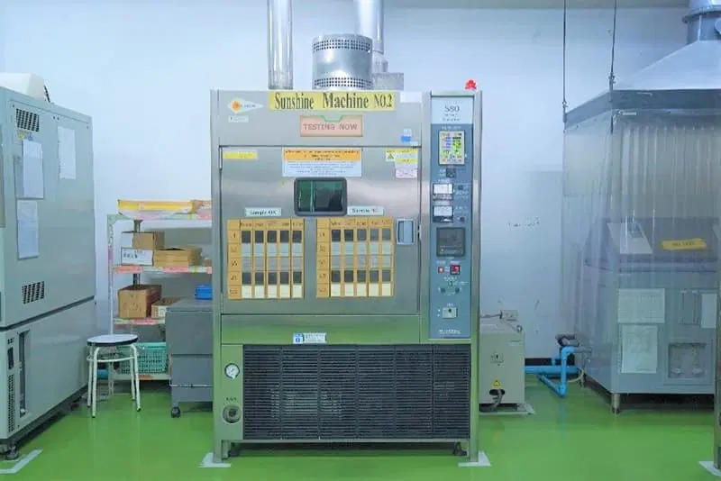 4. Sunshine Weather Meter : An accelerated weathering test machine to evaluate product durability under sunlight and weather conditions, monitoring changes in color and gloss over time.
